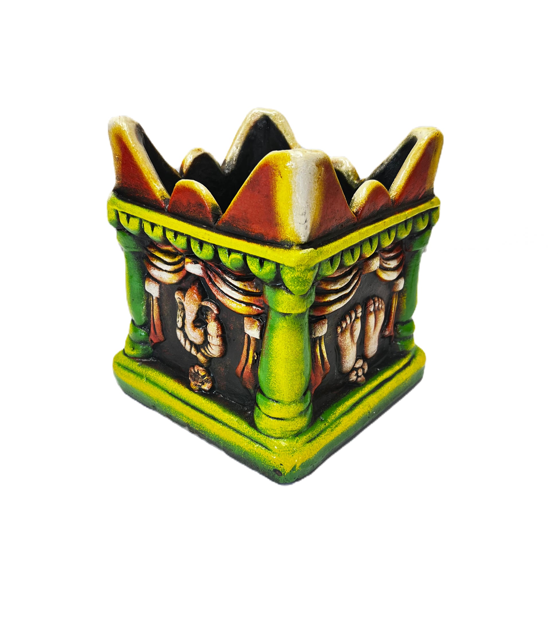 Clay Tulsi Pot 10", 4 different religious pics (MOQ=ea)