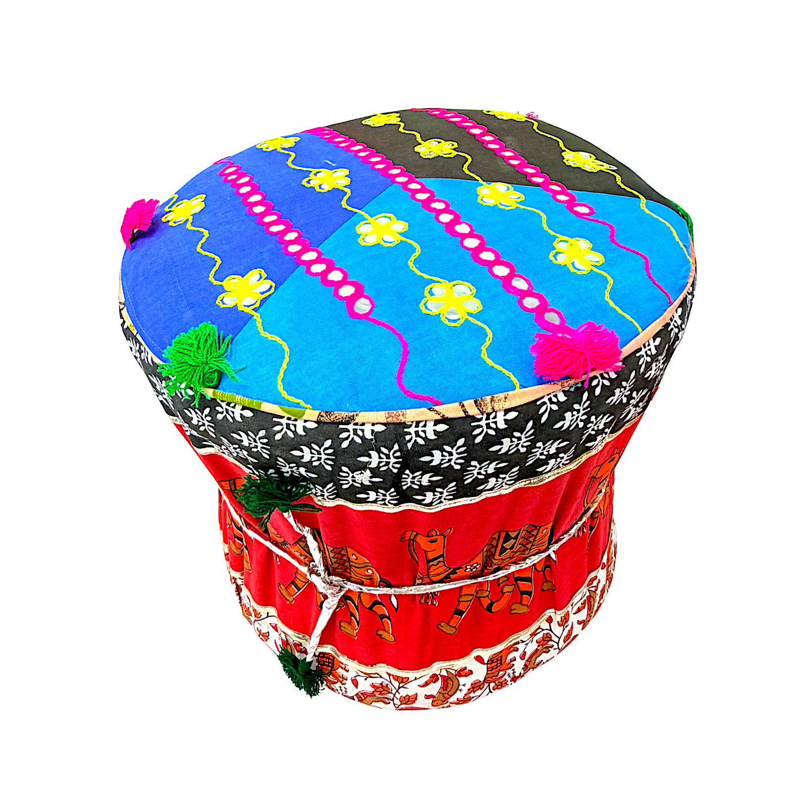 Handicraft Moodha/Poughy #1/Stool Rajasthani assorted design 14" high and 16" seat width (MOQ=ea)