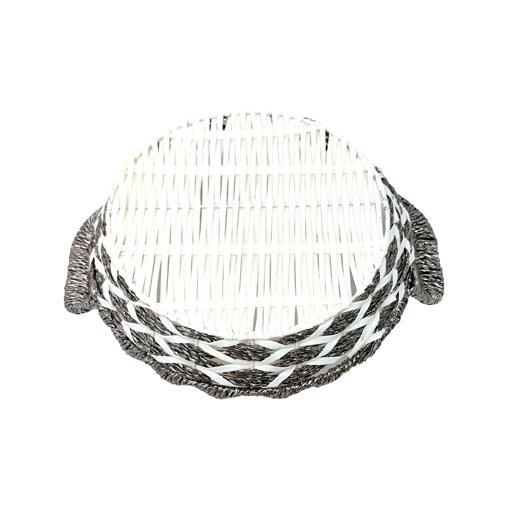 Mkaurs Round woven white and metallic silver wicker basket with handles (MOQ=dz)