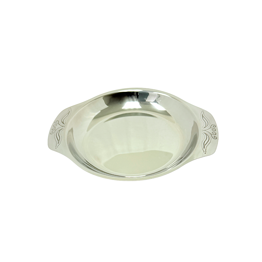 Steel tray with carving on handles 8.5 inch (MOQ=ea)