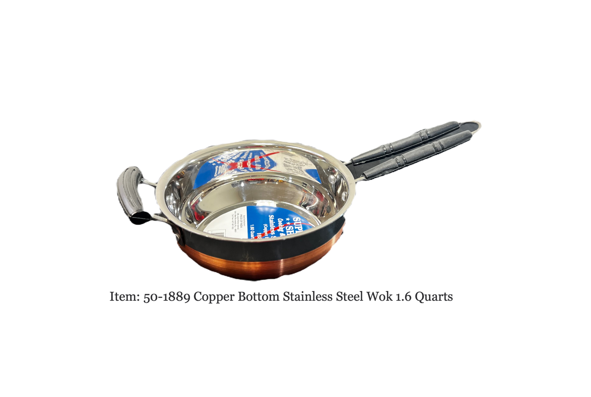 Wok copper bottom/stainless steel H 3" Dia 7.5" 1.5 liter (MOQ=ea)